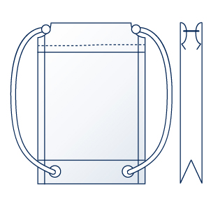 持ち手部分がテープでテープを持つと自然と口元が締まり巾着形状になります。