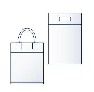 イベントや展⽰会、⼩売店舗⽤などで使⽤される様々な形状のオリジナルバッグの製造が可能です。